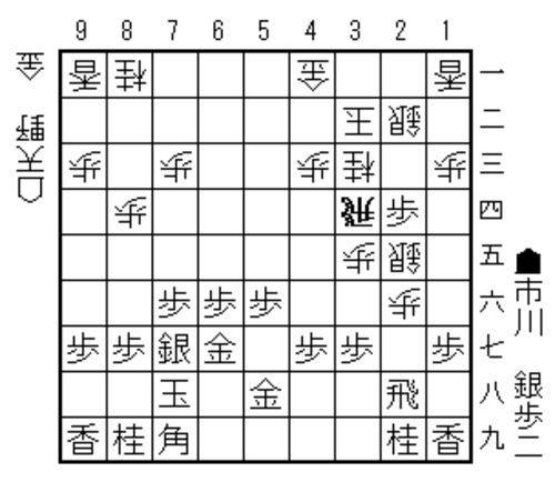 下手の市川先生の手を考えます。 第1問 一見はピンチですが、切り抜けられます。 A 83歩 B 74歩 C 77銀 第2問 急所の筋は? A 84金 B 64金 C 55歩 第3問 ここも急所です。 A 45歩 B 79歩 C 72桂成 第4問 これで勝勢です。 A 52銀 B 44同角 C 66銀