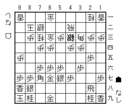 次はこの図から 79金84歩35歩同歩46銀 歩を突き捨ててから銀を出てみます。ここで36歩は後回しにして、34銀38飛45歩 このほうが自然でしょうか。35銀同銀同飛46歩に65歩 一気に決戦です。なお先手が78金の形も考えられますが、激しくなるならば79金のほうが…