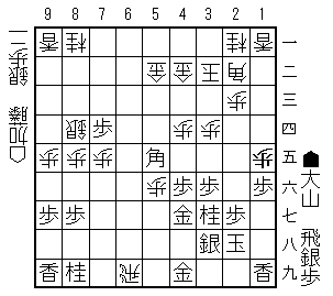 端が急所です。37桂と跳ねていますから。そういえば大山先生は桂馬を跳ねないのではなかったかな?思い込みでしょうか。