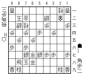 76金同飛(55飛には86歩)54銀と角にひもを付けて