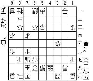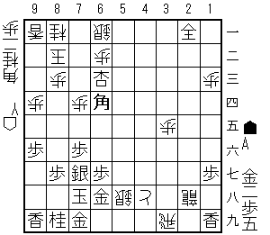 実戦の55角は攻め駒不足になります。詰ますために角は残しておきたいのです。小さな駒からがセオリーでした。