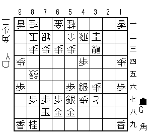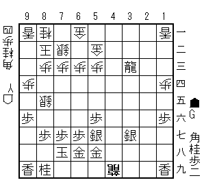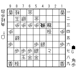 戻って42飛成48歩成同金同と同銀24角44竜13角打