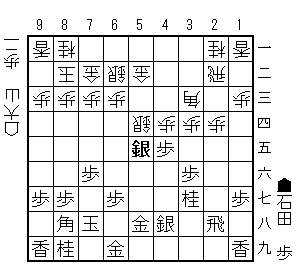 大山先生は54銀の方でした。石田先生は当然銀をぶつけて交換になり
