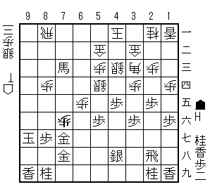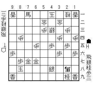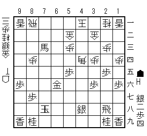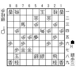 後手の持ち駒(攻め駒)に銀桂が加わりましたが、後手玉も薄くなりました。85桂か76歩から攻めるのでしょうが、先手も反撃に出やすいので良い勝負でしょう。