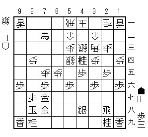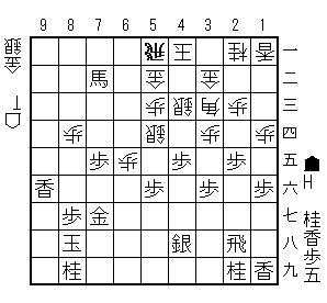 または66銀ということになります。(ここで金を上がるならば問題図以前で77桂成同金上の形にできたのですが。)ここで44桂同銀同歩同角55銀同銀同歩