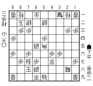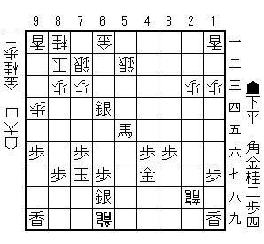 53歩同角75金に同角と切って