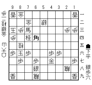 下平先生は77桂で角交換を避けましたが、大山先生は角を上がり