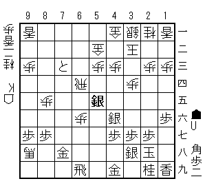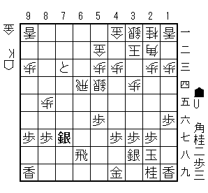 後手の自陣角で攻められる前に、先手から桂頭を攻め