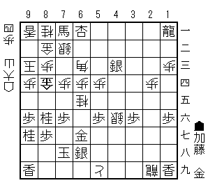交換したところは桂得(先に桂を取った)加藤先生のほうが良いようでも、玉の堅さ(遠さ)が違うので良い勝負でしょう。