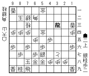 63銀打に37竜とすれば、明らかに先手有利、角と竜歩の交換で駒得です。あとはゆっくり攻めれば良いはずですが。二上先生はわかっているのでしょうが端攻めです。きれいに攻めて勝とうというのは棋風というよりは勝負師として甘いのでしょう。先手が大山先生だったら絶対に37竜だと思います。