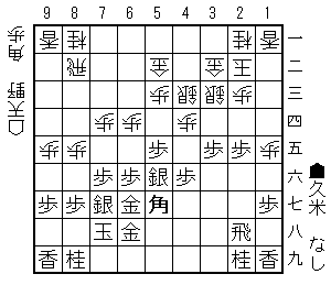 先手は39角の筋を避けるために自陣角を打ってきました。リードを広げるチャンスです。