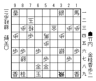 42銀43金左31銀不成。竹内先生は角を取ったのですが、