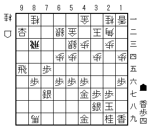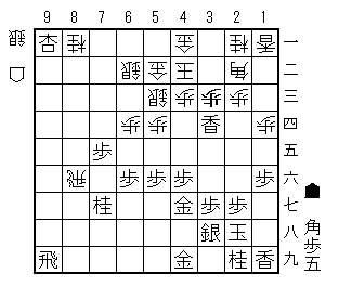 これは途中で先手が47金とした場合に出現します。75歩のところを73桂88飛とすれば、昨日までに調べてきた65歩急戦に戻るところでした。だから47金とする意味はあるのです。さて仕掛けは75歩からで、75同歩95歩同歩86歩