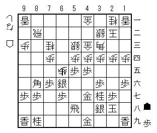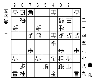 先手の仕掛けを許しています。実戦例なのでしょうが、86歩同歩55歩同銀同銀同角86飛88歩