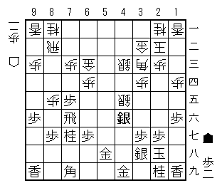 先手が銀をぶつけたのが疑問手です。前の例のように、46歩54銀引47金などとしていれば。46同銀同角54銀47金42飛