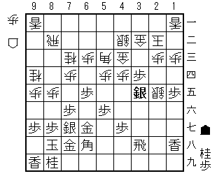 17香とせずに38飛。後手は24銀ではなく95歩。