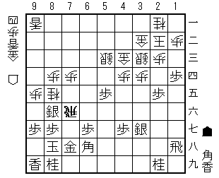 先手は棒銀で端を攻めていきます。14同歩同香同香15歩85桂14歩 (77桂成同桂は得ではないから) 12歩86銀55歩
