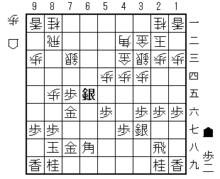 73銀としないで75歩はどうなるでしょうか。先手がこれをとがめたいと思えば、65歩42角75歩